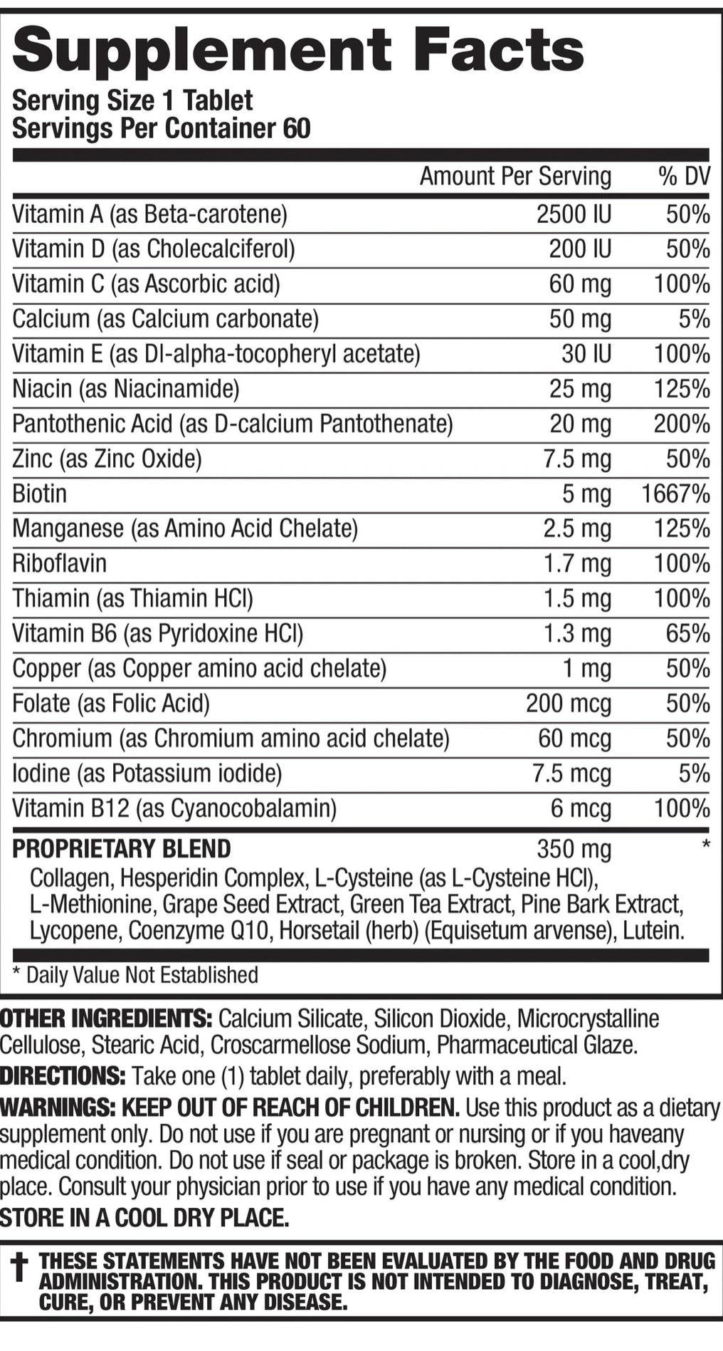 Top Secret Nutrition ® Hair, Skin And Nails* with Collagen, Biotin and Hesperidin Complex is a powerful blend of 29 unique anti-aging vitamins, minerals and phytonutrients.* This cutting-edge formula was designed to promote healthy and beautiful hair, skin and nails and protect them from the damaging effects of natural elements, environmental pollutants, aging and stress.*