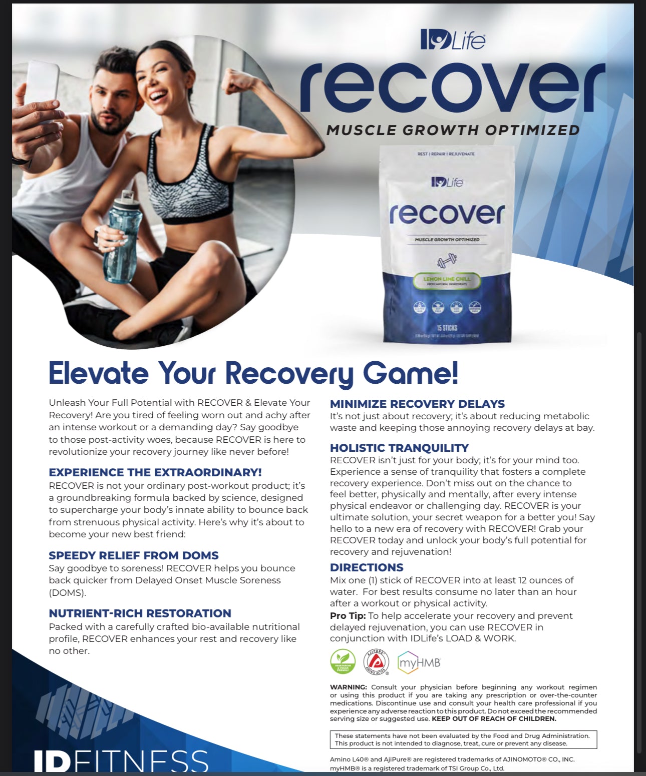 The IDFitness Stack is a one-stop solution for transforming your fitness journey. Valued over $199 Retail, IDFitness is not a simple Pre- / Post-workout supplements program. It’s a highly flexible product combination with the highest level of clinically substantiated and established ingredients known to help promote muscle tone, but further to prevent muscle loss as we age. That’s the idea behind load, work, and recover.