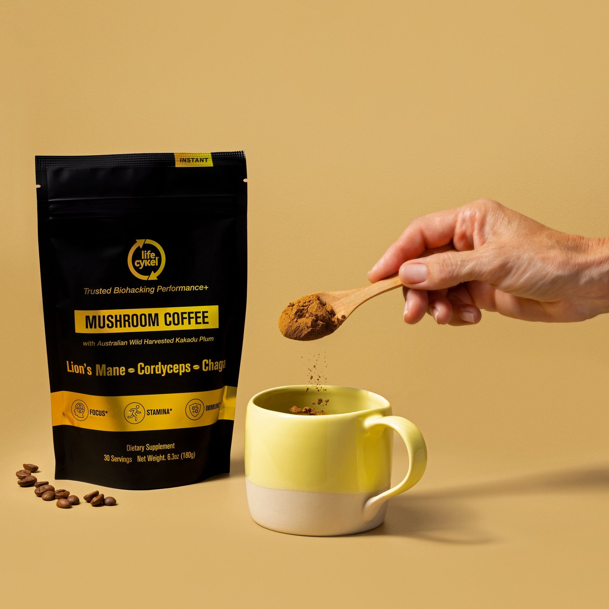 Our authentic Mushroom Coffee is crafted with real organic Lion's Mane, Cordyceps, Chaga, and Australian wild-harvested Kakadu Plum to give you the perfect balance of focus, stamina, and immune support.*